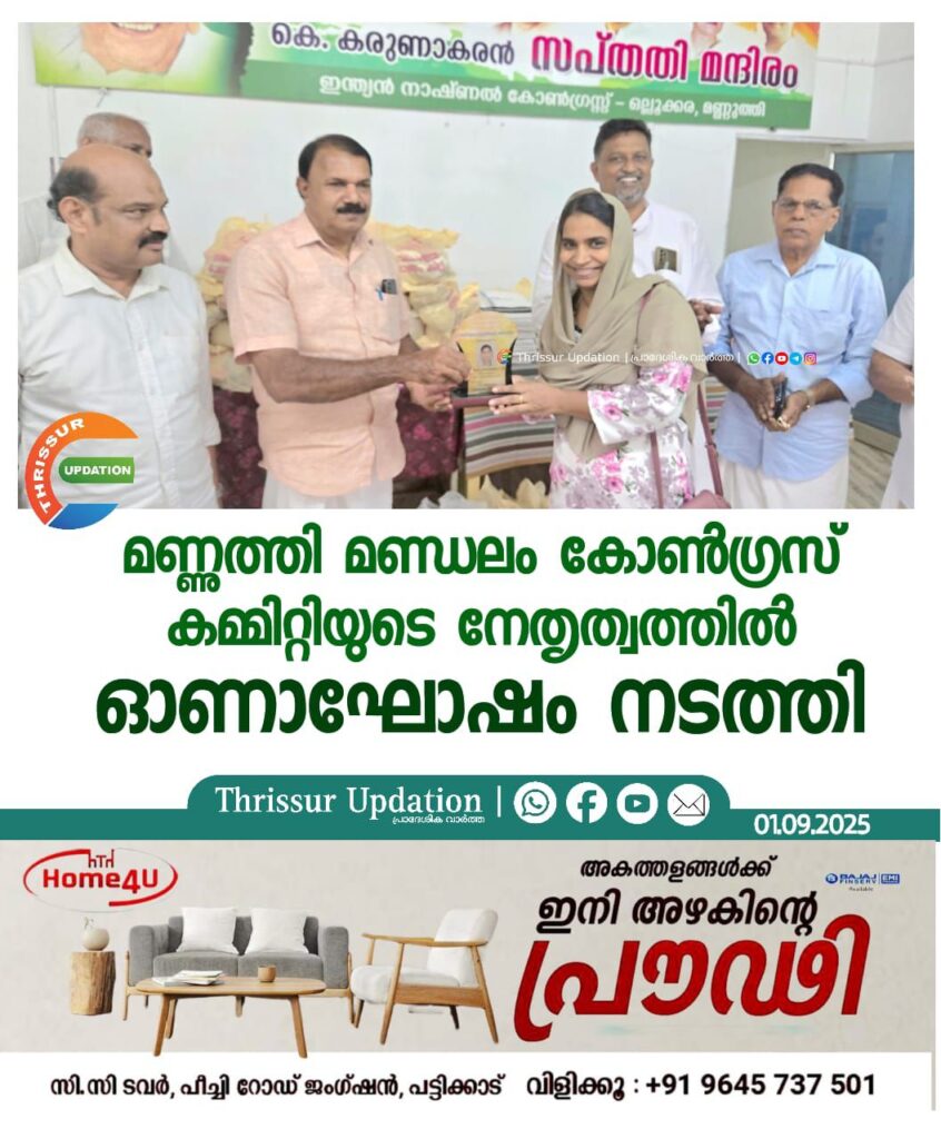 മണ്ണുത്തി മണ്ഡലം കോൺഗ്രസ് കമ്മിറ്റിയുടെ നേതൃത്വത്തിൽ ഓണാഘോഷം നടത്തി