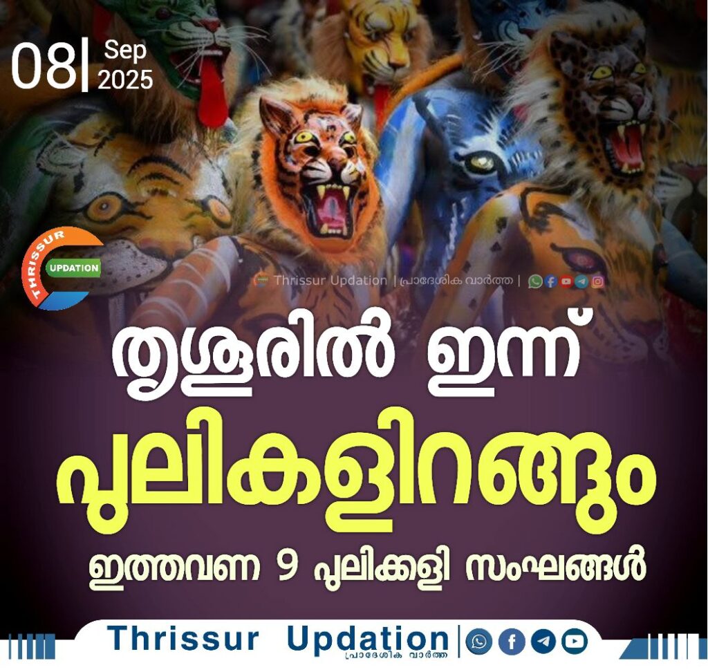 തൃശൂരിൽ ഇന്ന് പുലികളിറങ്ങും; ഇത്തവണ 9 പുലിക്കളി സംഘങ്ങൾ