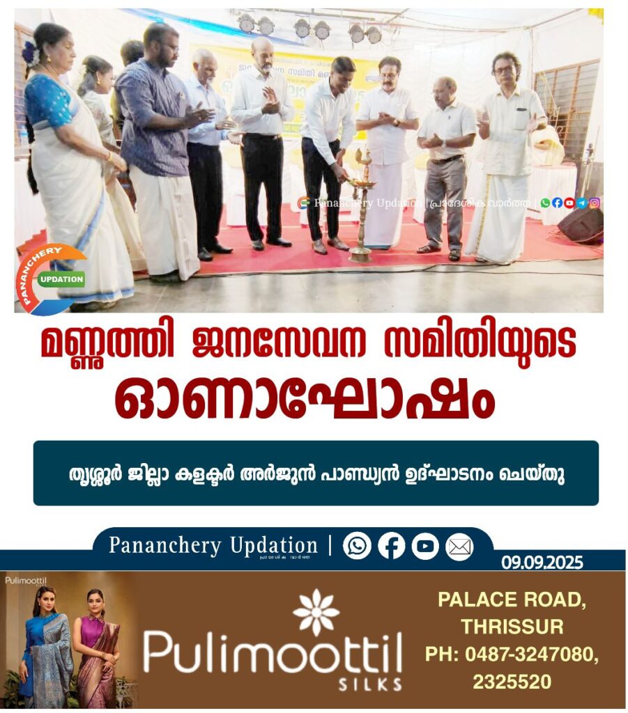 മണ്ണുത്തി ജനസേവന സമിതിയുടെ ഓണാഘോഷം തൃശ്ശൂർ ജില്ലാ കളക്ടർ അർജുൻ പാണ്ഡ്യൻ ഉദ്ഘാടനം ചെയ്തു