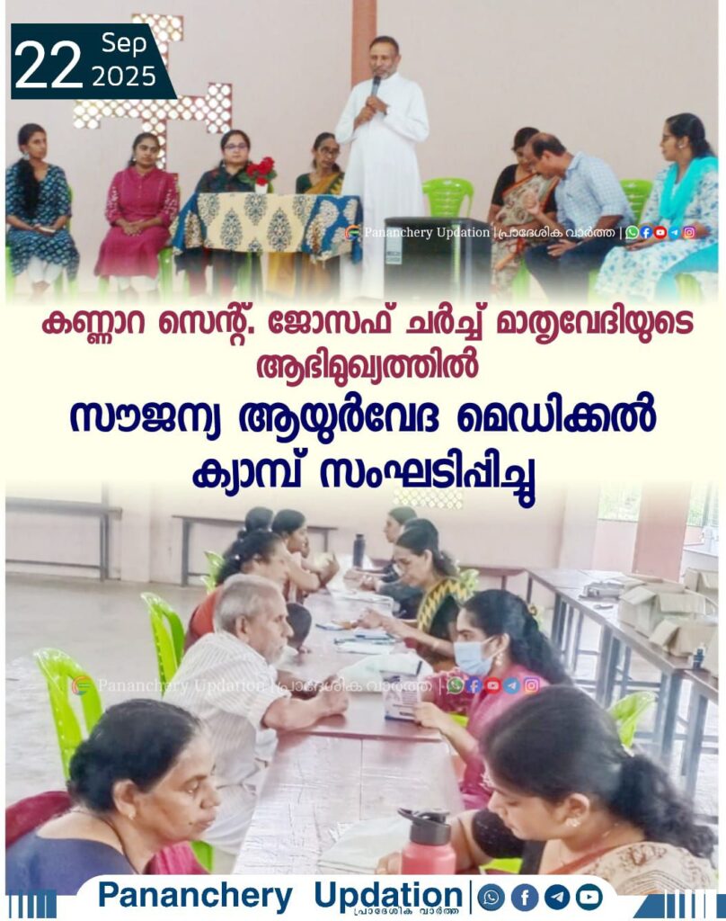 കണ്ണാറ സെന്റ്.ജോസഫ് ചർച്ച് മാതൃവേദിയുടെ ആഭിമുഖ്യത്തിൽ സൗജന്യ ആയുർവേദ മെഡിക്കൽ ക്യാമ്പ് സംഘടിപ്പിച്ചു
