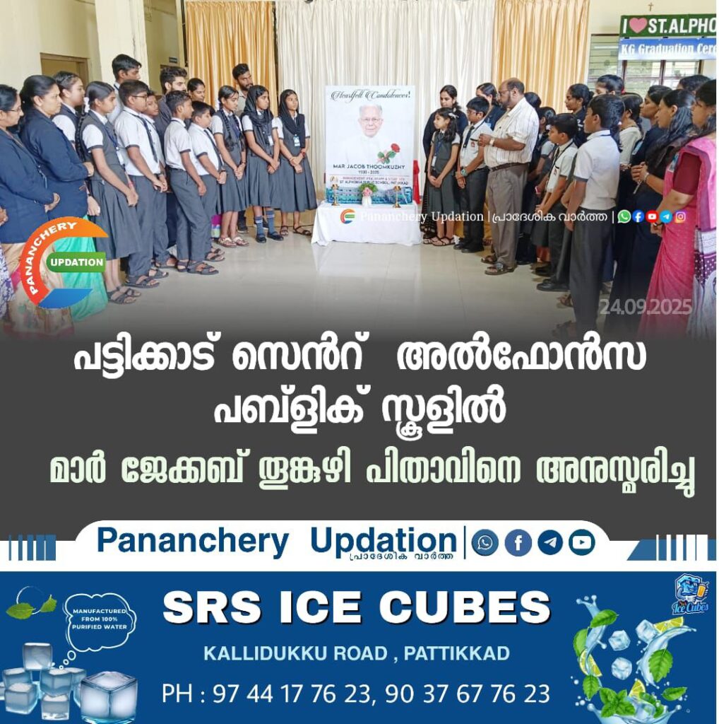 പട്ടിക്കാട് സെൻ്റ് അൽഫോൻസ പബ്ളിക് സ്കൂളിൽ, തൃശൂർ അതിരൂപതയുടെ മുൻ മെത്രാപ്പോലീത്ത, ദിവംഗതനായ മാർ ജേക്കബ് തൂങ്കുഴി പിതാവിൻ്റെ അനുസ്മരണ ചടങ്ങ് സംഘടിപ്പിച്ചു. പ്രിൻസിപ്പൽ ബാബു ജോസ് തട്ടിൽ അനുസ്മരണ പ്രഭാഷണം നടത്തി. കുട്ടികളും രക്ഷിതാക്കളും പുഷ്പാച്ചർന നടത്തി.