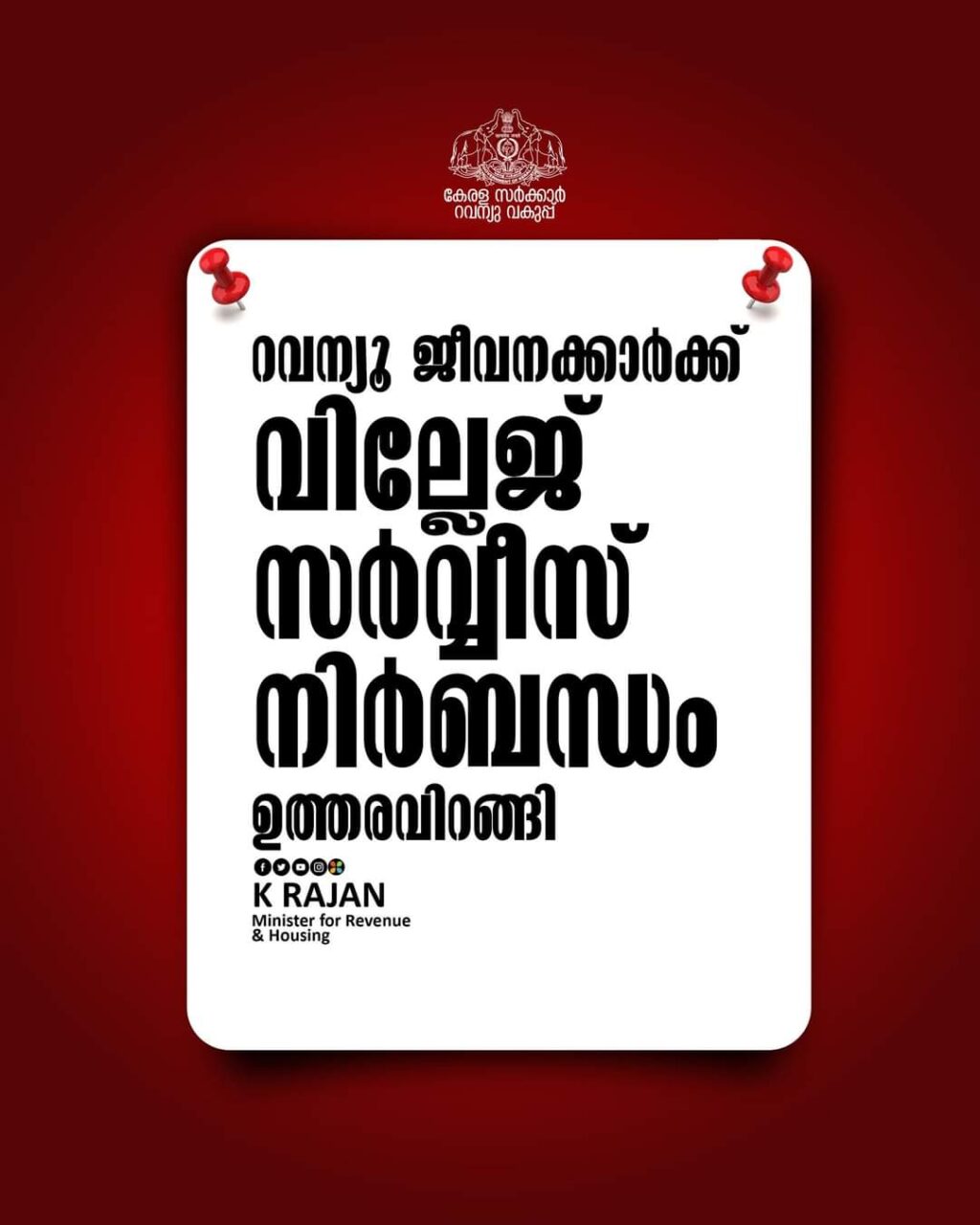റവന്യൂ ജീവനക്കാർക്ക് വില്ലേജ് സർവ്വീസ് നിർബന്ധമാക്കി ഉത്തരവിറങ്ങി