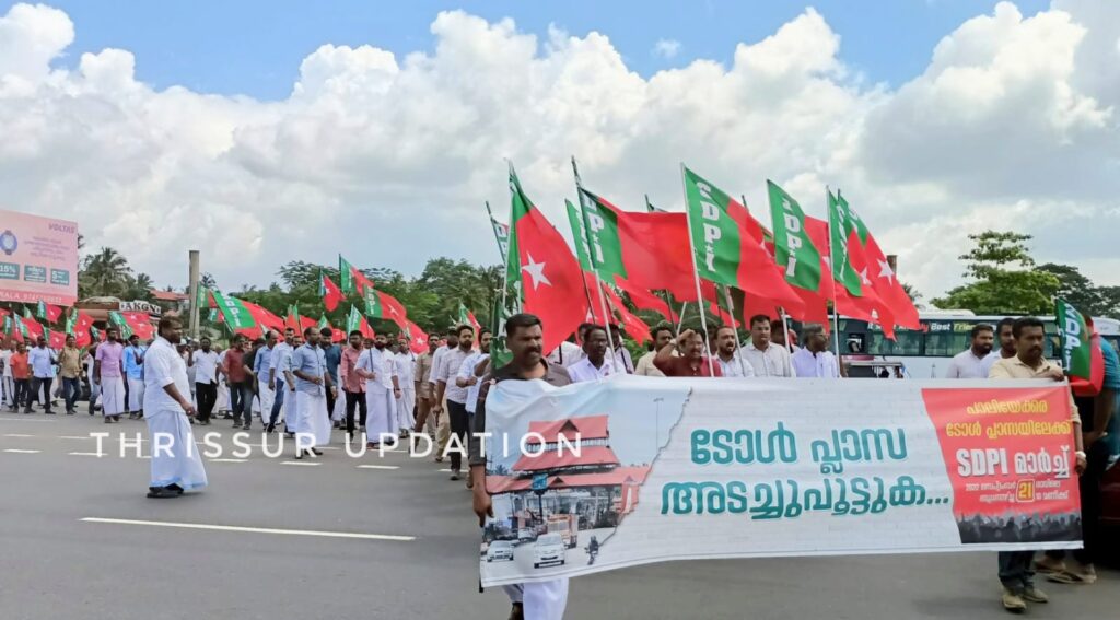 പാലിയേക്കര ടോൾ പ്ലാസ ഉടൻ അടച്ചുപൂട്ടുക എന്നാവശ്യപ്പെട്ട് എസ്.ഡി.പി.ഐ തൃശ്ശൂർ ജില്ലാ കമ്മിറ്റിയുടെ നേതൃത്വത്തിൽ ടോൾ പ്ലാസയിലേക്ക് മാർച്ച് നടത്തി
