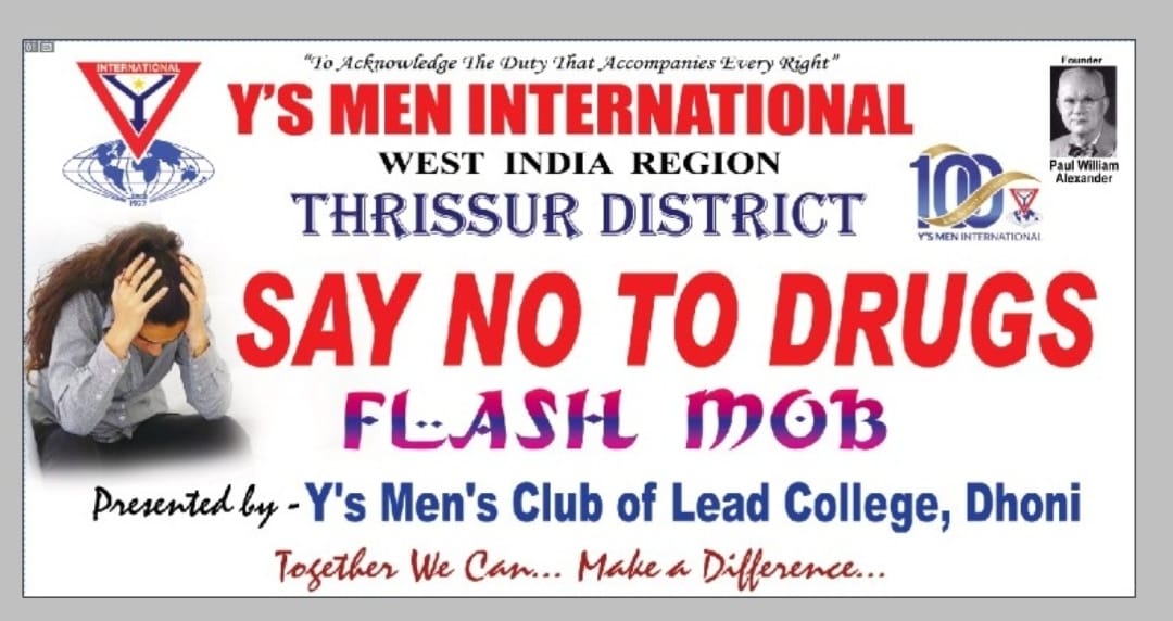 തൃശ്ശൂർ ഡിസ്ട്രിക്ടിന്റെ നേതൃത്വത്തിൽ ലഹരിക്കെതിരെ സ്ക്കൂൾ കുട്ടികളെ ബോധവൽക്കരിക്കുന്നതിനായി പാലക്കാട് ദോണിയിലുള്ള വൈസ് മെൻസ് ക്ലബ് ഓഫ് ലീഡ് കോളേജിലെ വിദ്യാർത്ഥികൾ അവതരിപ്പിക്കുന്ന ഫ്ലാഷ് മോബ് SAY NO TO DRUGS ഇന്ന് (27.09.2022) ചൊവ്വാഴ്ച്ച പട്ടിക്കാട് ,പീച്ചി, താളിക്കോട്, ഹൈസ്ക്കൂളുകളിലായി നടത്തുന്നു. രാവിലെ 9 മണിക്ക് പട്ടിക്കാട് സെന്ററിൽ വെച്ച് പീച്ചി പോലീസ് സ്റ്റേഷൻ ഹൗസ് ഓഫീസർ ഇൻ ചാർജ് KC ബൈജു ഉദ്ഘാടനം നിർവഹിക്കുന്നു.