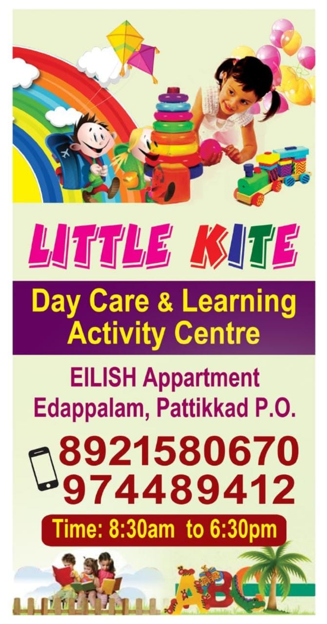 പട്ടിക്കാട് ഇടപ്പലം ഗവ. പ്രാഥമിക ആരോഗ്യ കേന്ദ്രത്തിന് സമീപം Little Kite Day Care ബുധനാഴ്ച വിജയദശമി ദിനത്തിൽ പ്രവർത്തനം ആരംഭിക്കുന്നു. Kids Day Care Center ലേക്ക് 6 മാസം പ്രായം മുതലുള്ള കുട്ടികളുടെ Admission ആരംഭിച്ചിരിക്കുന്നു. താല്പര്യമുള്ള രക്ഷിതാക്കൾ ഈ നമ്പറിൽ ബന്ധപ്പെടുക.