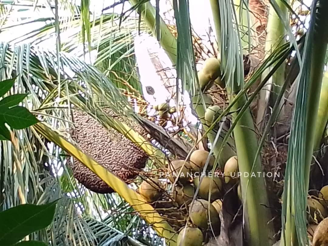 സമീപത്തെ പറമ്പിലെ തെങ്ങിൽ വൻ തേൻ കൂട് കൂട്ടി; വീട്ടുകാർ ഭീതിയിൽ