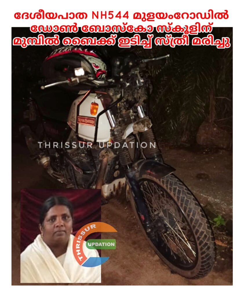 ദേശീയപാത NH544 മുളയംറോഡിൽ ഡോൺ ബോസ്കോ സ്കൂളിന് മുമ്പിൽ ബൈക്ക് ഇടിച്ച് സ്ത്രീ മരിച്ചു